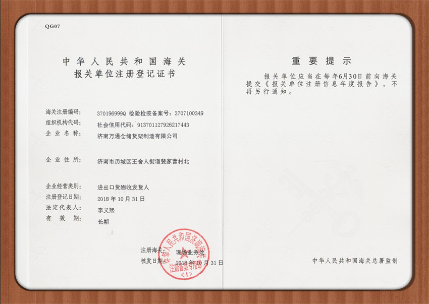報(bào)關(guān)登記證書